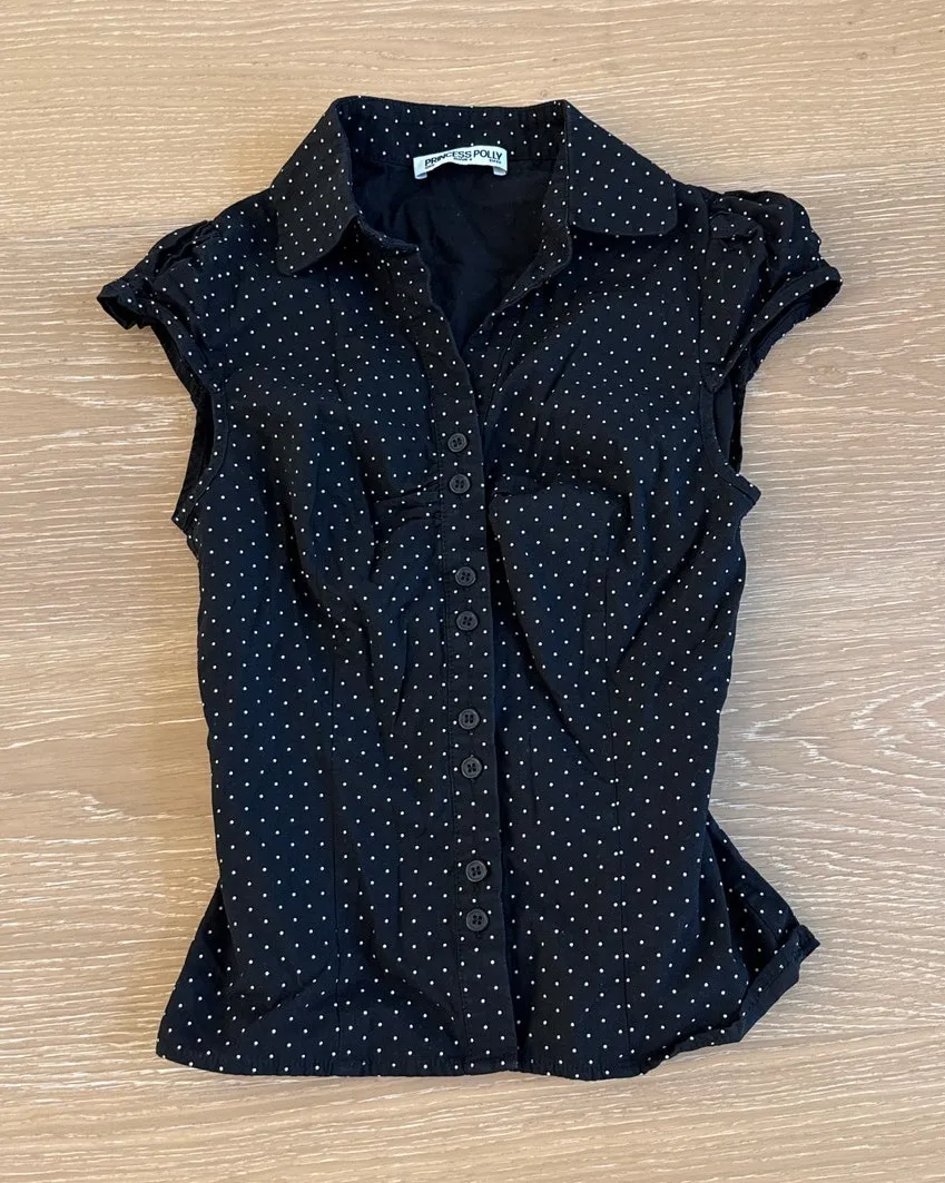Princess Polly Arianwyn Polka Dot Shirt KC0126-B30 Size : US 0 Color : Black White Condition : Gre... Show more