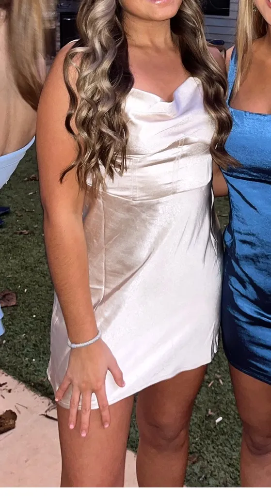 *gold mini dress *corset design in middle *so comfortable *worn once for formal *small adjustabl... Show more