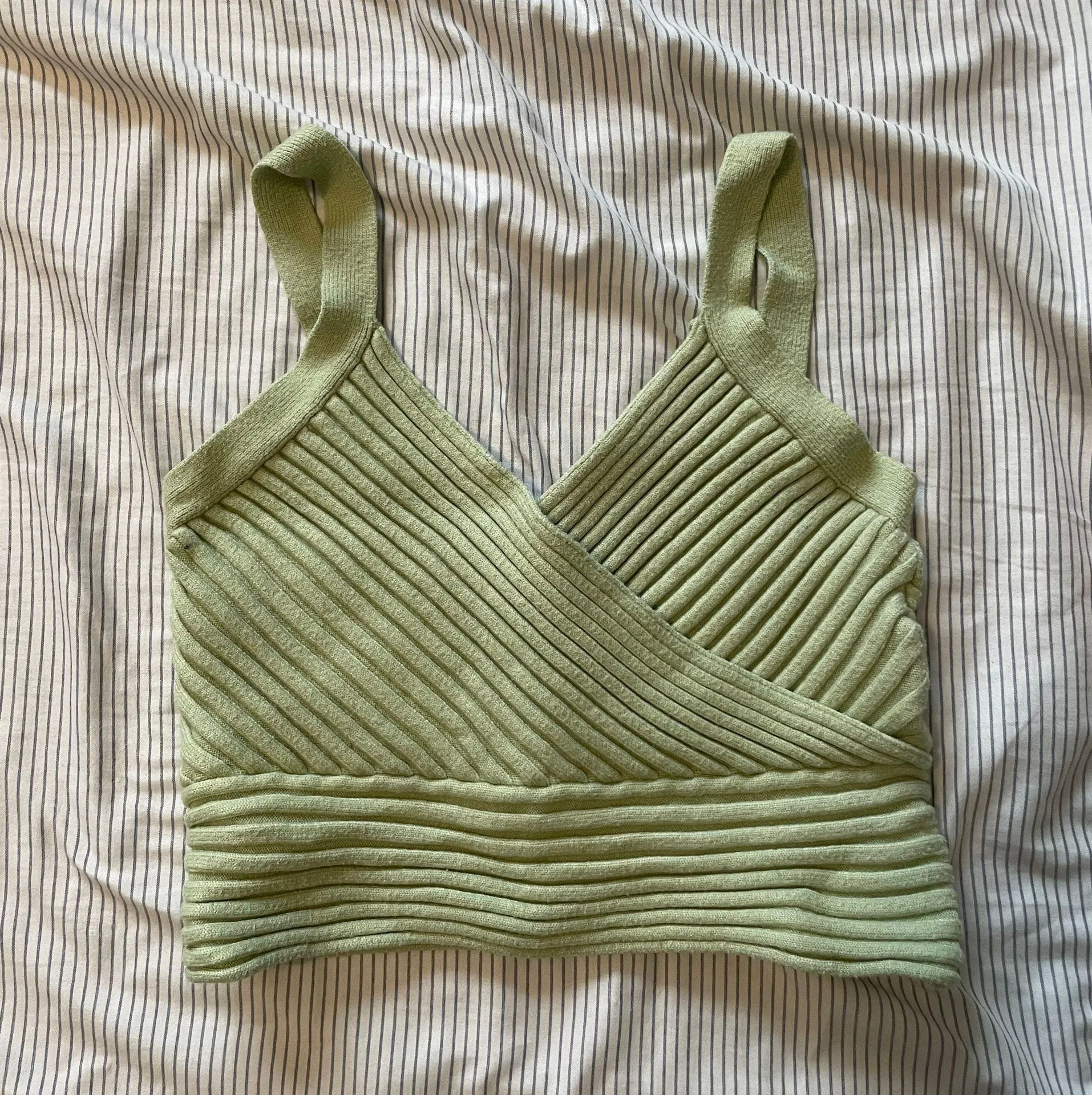Super cute stretchy green top. Size is XS/S. Only worn a few times! Very good quality and super cute... Show more