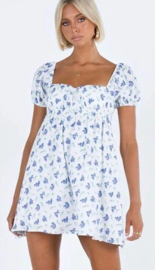 Princess Polly Let’s Dance mini dress floral blue brand new puff sleeve babydoll dress size 4