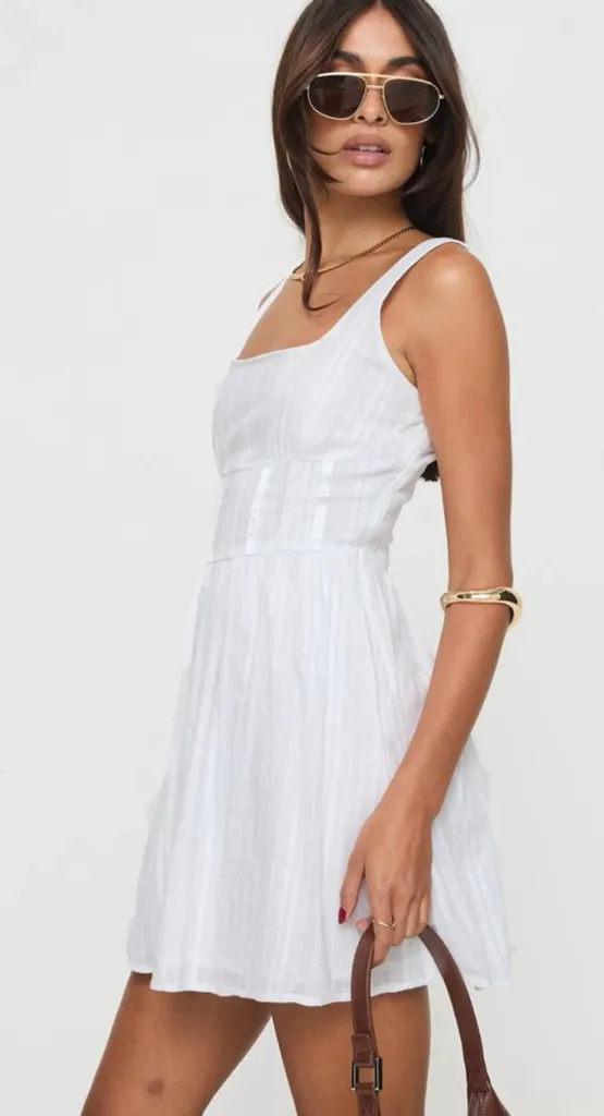 Brand: Princess Polly Size: AU 10 / US 6 / EU 38 Color: White Princess Polly fit-and-flare mini dre... Show more