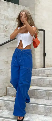 Size tag removed but fit like size 6. Perfect condition. Mid-rise cargo straight leg pants Belt loo... Show more