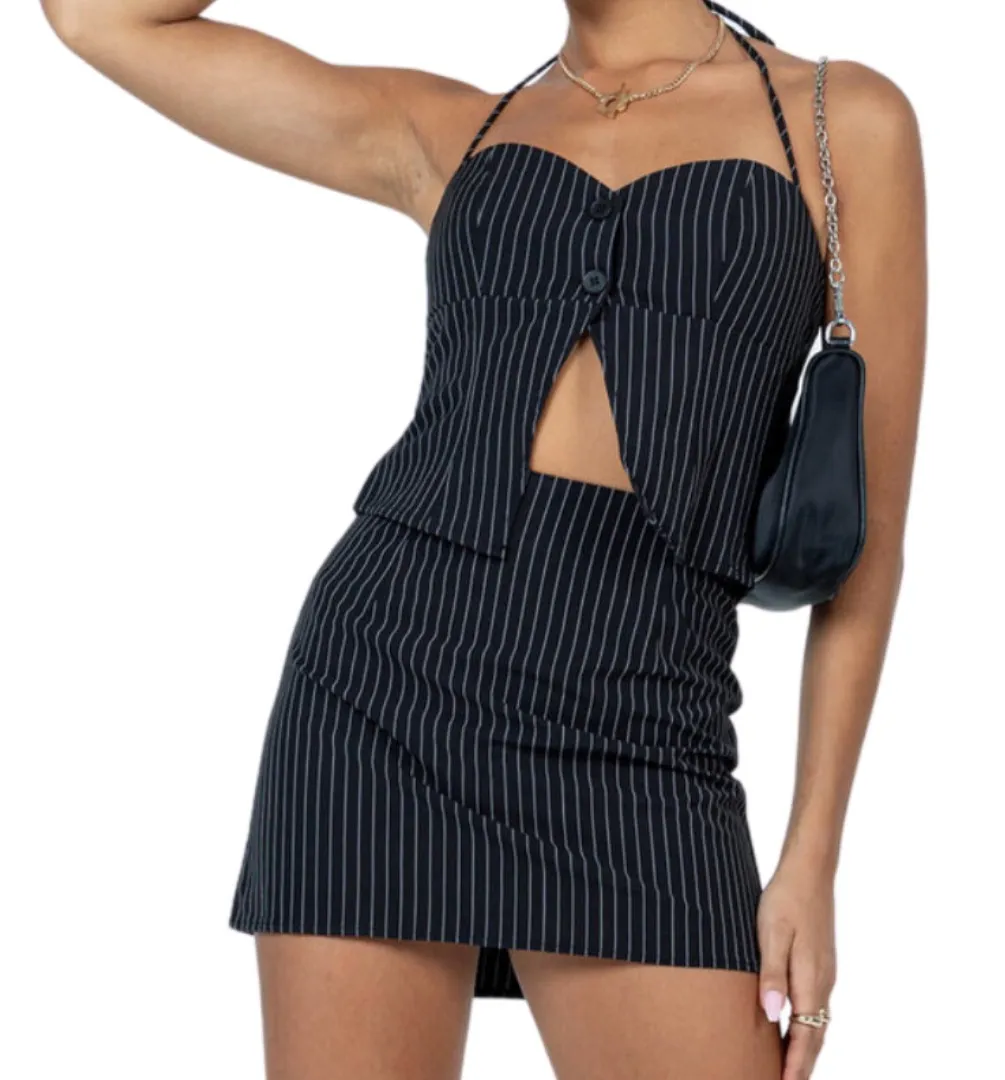 - new without tags - size 4 / small - halter tie top + button front closure - zip closure mini skirt... Show more