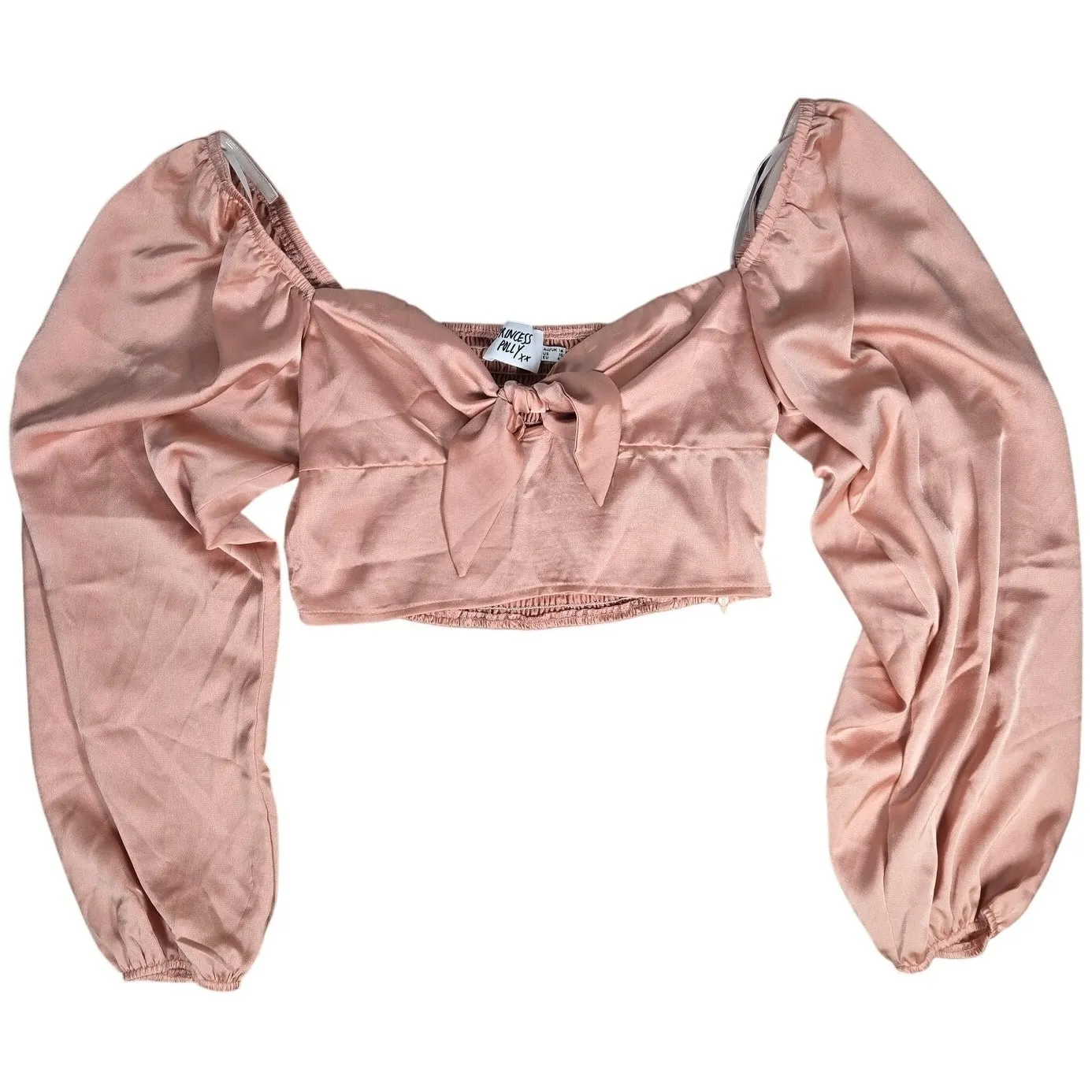 Princess Polly Pink Satin Tie Front Cropped Long Sleeve Peasant Estee Top 10 Tagged info: Size: 10... Show more
