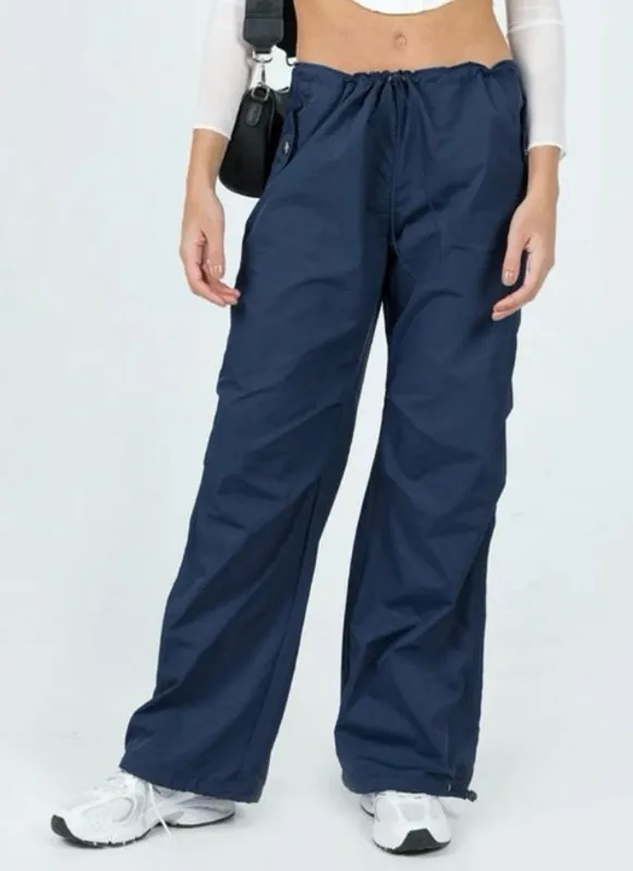 Princess Polly New with Tags / NWT Annerley Wide Leg Parachute Pants Navy Blue Size 12 Measurem... Show more