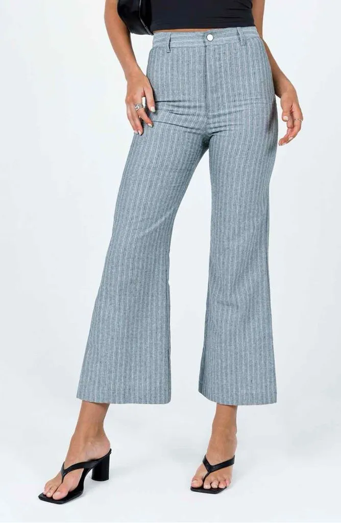 Princess Polly Rach Striped Linen Blend Flare Leg Crop Pants Teal Grey Size 8 Teal grey stripes... Show more