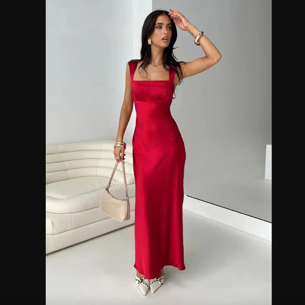 . Bias-cut Maxi dress Silk-like material, straight neckline, fixed straps, gathered ruched at bust,... Show more