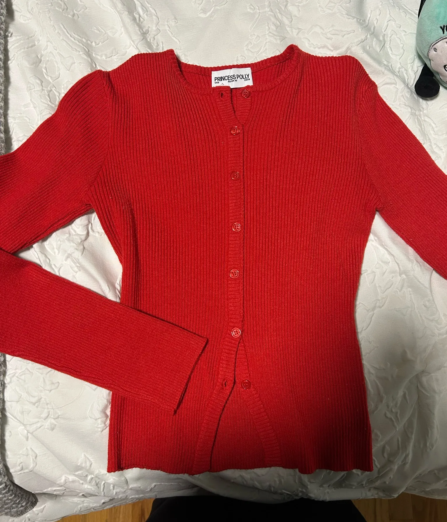 Red knit long sleeve Size 6 Some noticeable pilling