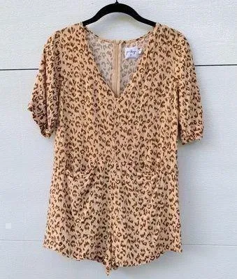 Animal print short sleeve romper Pocket front Zip closure US size 2 In good condition