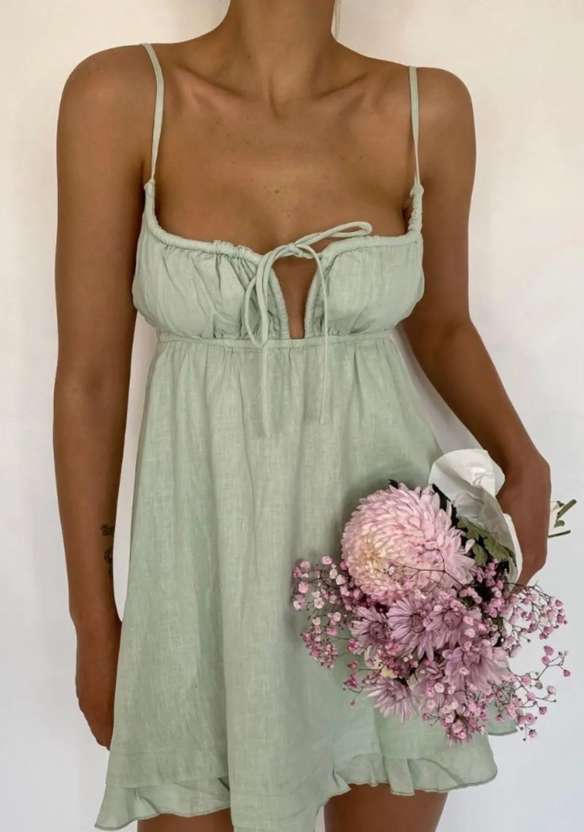 Princess Polly Sage Green Empress of Love Mini Dress 10. Mini dress. Princess Polly exclusive. Tie a... Show more