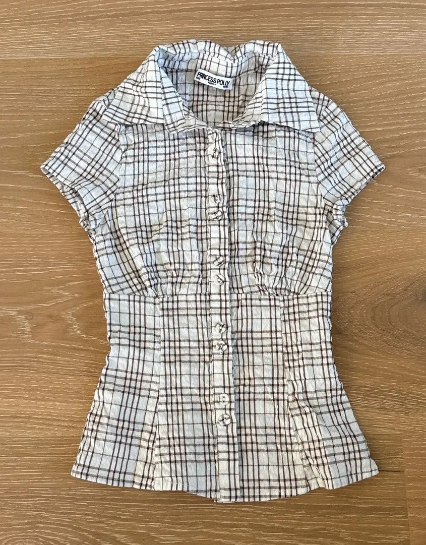 Princess Polly Cottesloe Check Button Up Shirt KC0126-B5 Size : US 0 Color : Brown Cream Condition... Show more