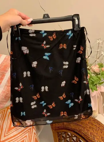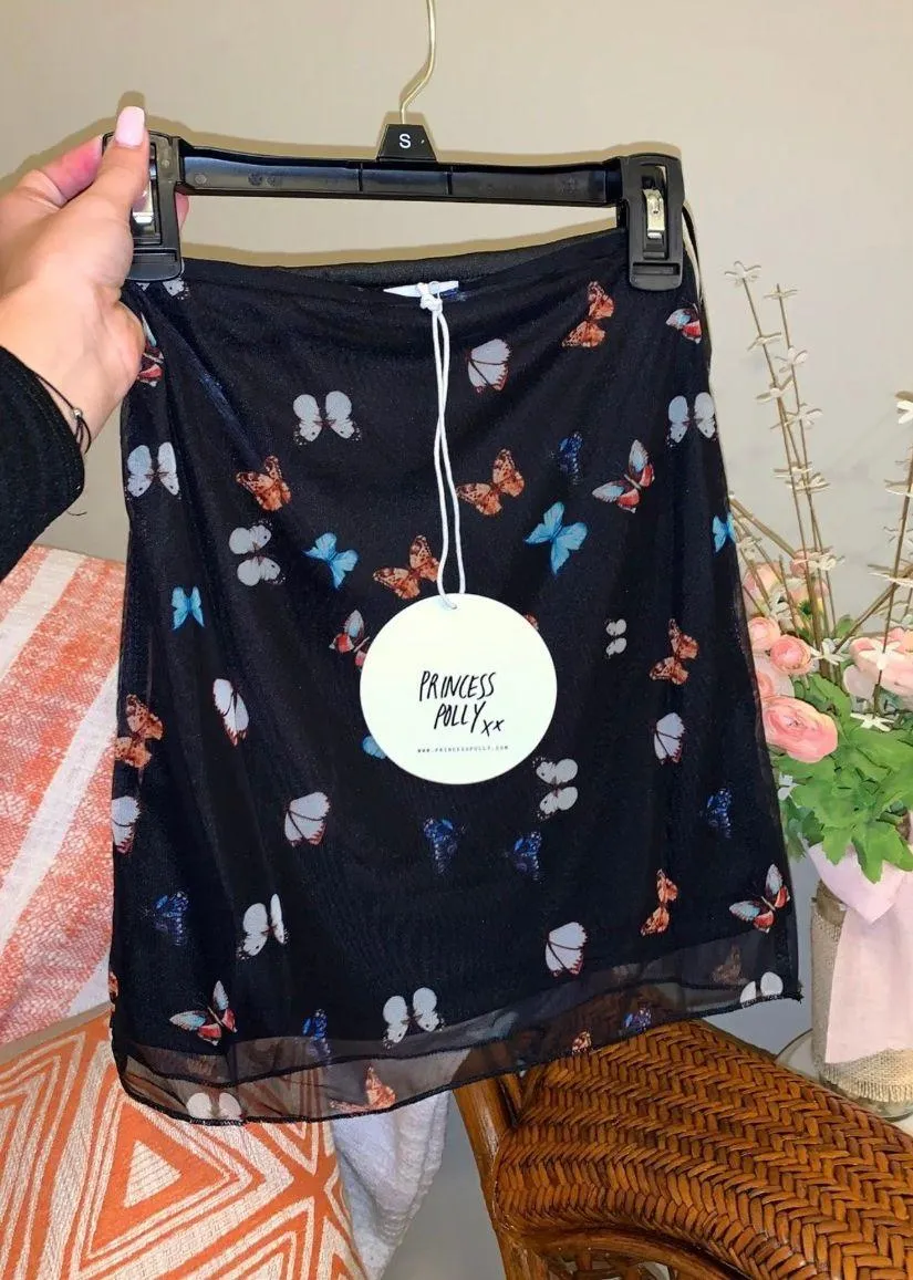 Princess Polly butterfly skirt. There is no zipper on the back. Front and back of skirt is shown. Th... Show more