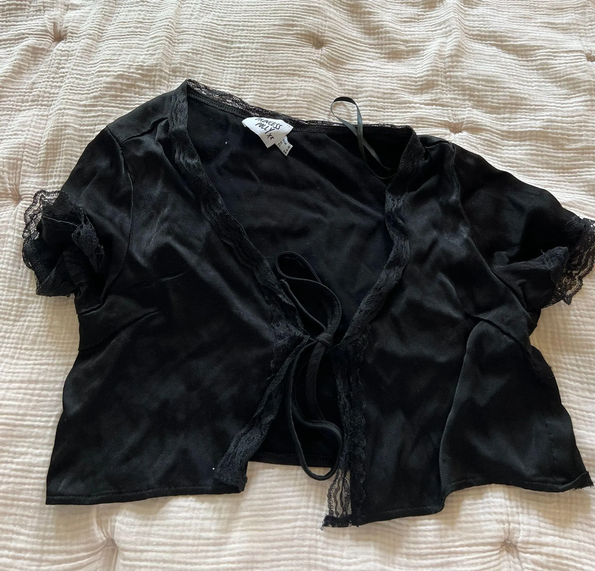 Black front tie PP top w lace detailing! Size S