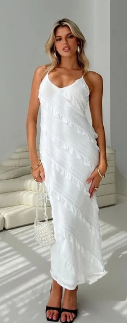 Princess Polly White Ruffle Midi Dress Size XS - $45 (40% Off Retail) New With Tags - From Elle