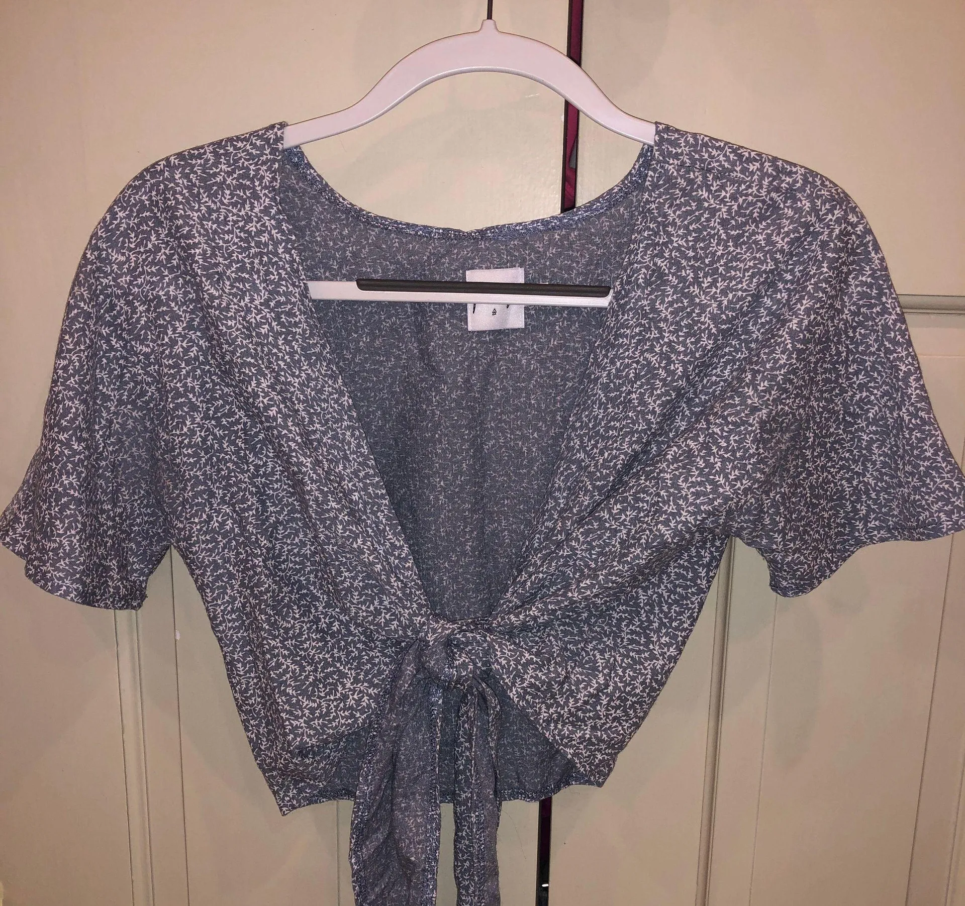 Blue and white tie top Light blue in real life Can be styled in different ways Size 4 Great cond... Show more