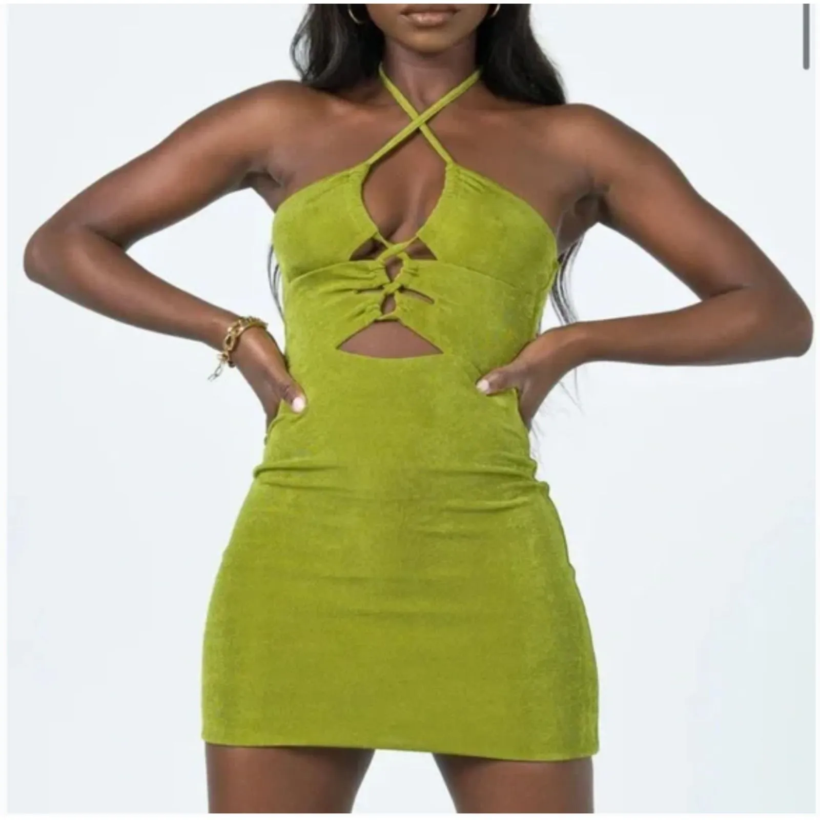 Princess Polly Zamia Cutout Halter Bodycon Mini Dress Metallic Green US Size 6 Gently used conditio... Show more