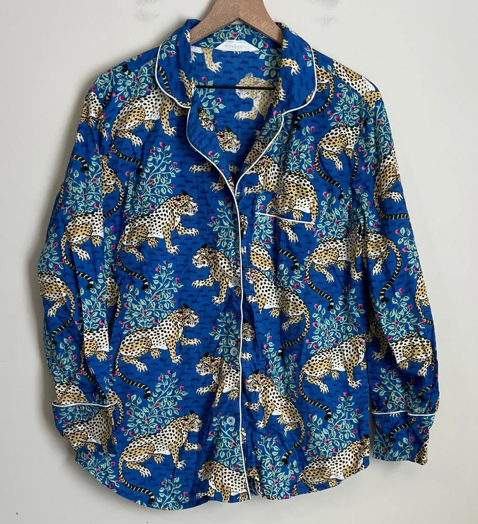 Print Fresh Organic Cotton Bagheera Leopard Pajama Shirt Sapphire Blue Women Med - $38 - From Natalie