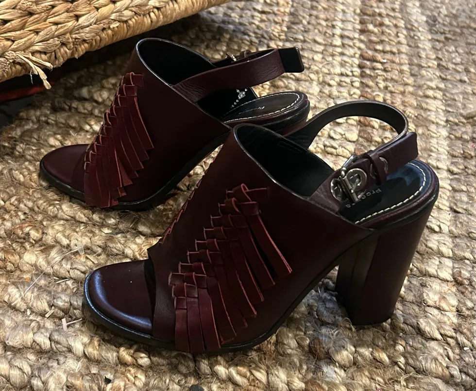 Proenza Schouler Burgundy Fringe Open-Toe Heeled Sandals Red Size 7 - $290 New With Tags - From Kayla