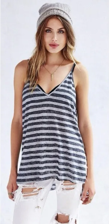 This Project Social T camisole features gray and black stripes with a V-neckline in both the front a... Show more