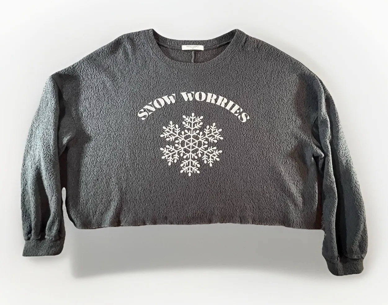 * Project Social T Los Angeles Sherpa fleece pullover * Charcoal gray with white "Snow Worries" and... Show more