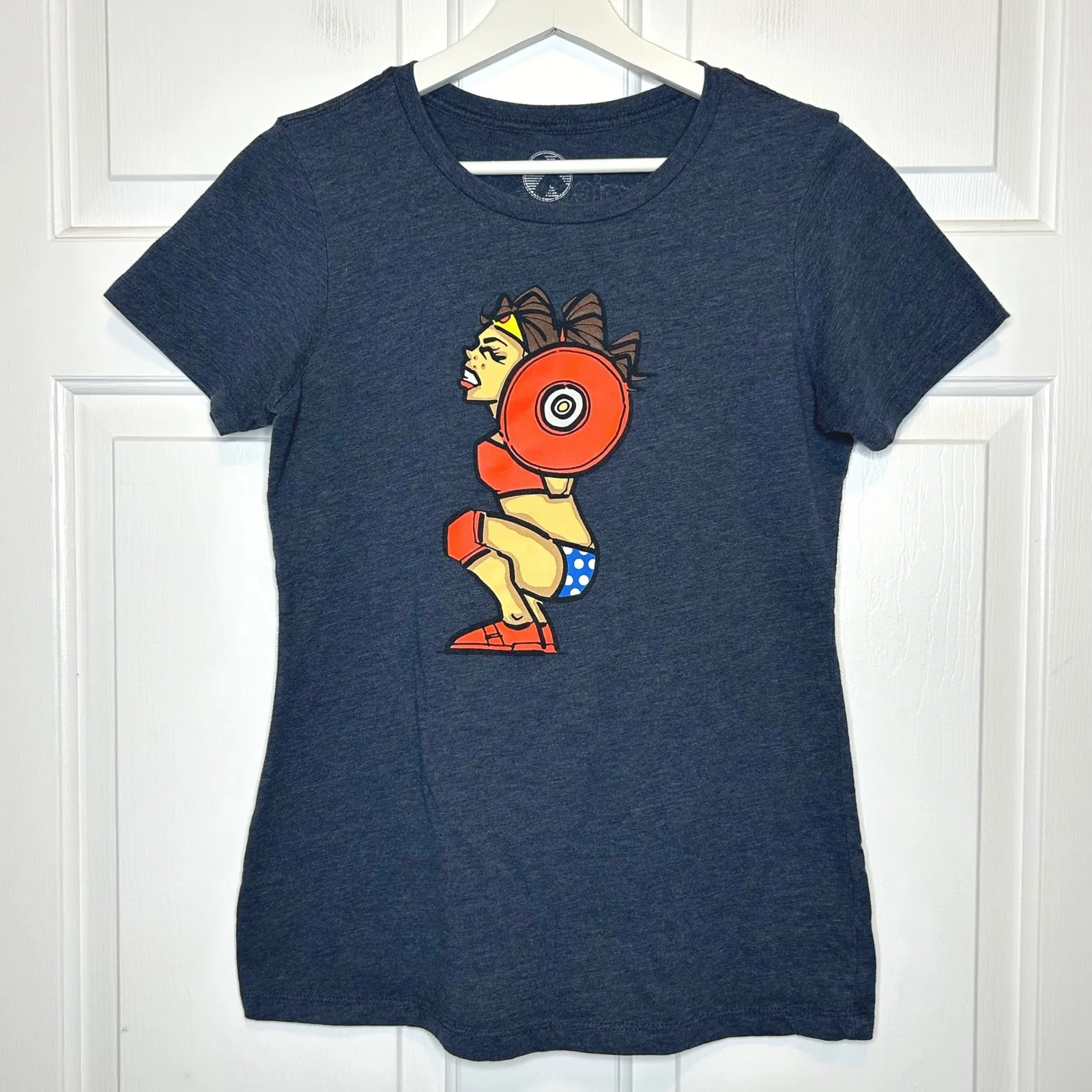 Project X Graphic tee Size: Large Pre-Owned with no stains or tears. Project X graphic t-shirt with a bold Wonder Woman lifting design. This navy blue tee offers a comfortable fit and features a unique graphic perfect for gym enthusiasts or fans of the iconic superhero. Ideal for casual wear, workouts, or as a fun statement piece. Type: T-Shirt Features: Breathable, Stretch Neckline: Crew Neck Performance/Activity: Weightlifting, CrossFit, Gym & Training Sleeve Length: Short Sleeve Fit: Regular Closure: Pullover Theme: Fairytale & Fantasy, Geek, Signs & Symbols Character: Wonder Woman Measurements laying flat: Pit to Pit: 18: Shoulders: 15" Length: 26" Keywords: graphic tee, superhero, activewear, athletic, workout shirt, casual top, comfort fit, unique design, women's apparel, gym wear, fitness apparel, statement shirt Orders ship next business day. Smoke free home.