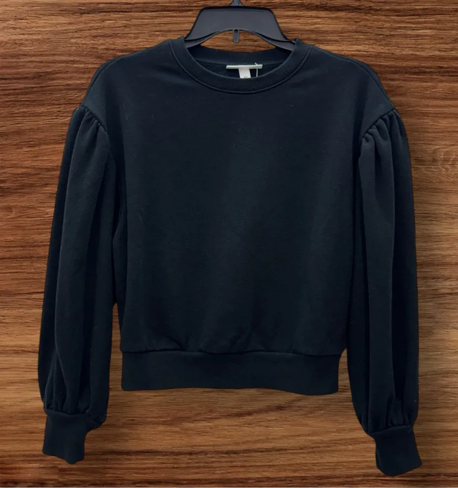 BRAND NEW WITHOUT TAGS SIZE- XS OVERSIZED COLOR- JET BLACK MEASUREMENTS FLAT- 20 INCHES STRETCHES TO 22 LENGTH-20 INCHES Elegant black women's top with stylish puff sleeves. Perfect for any occasion.