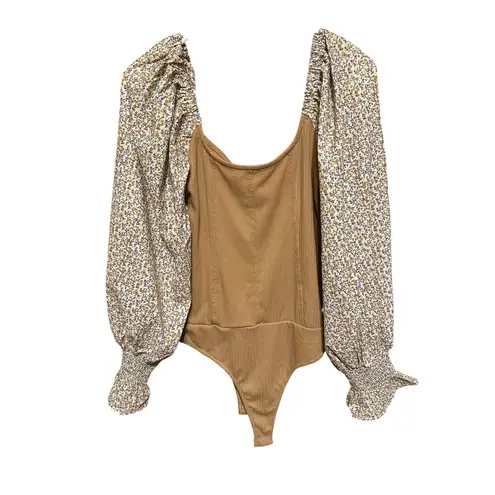 PROMESA NWOT tan boho ribbed bodysuit with cottage core puffed‎ sleeves festival Size M - $21 - From Melissa