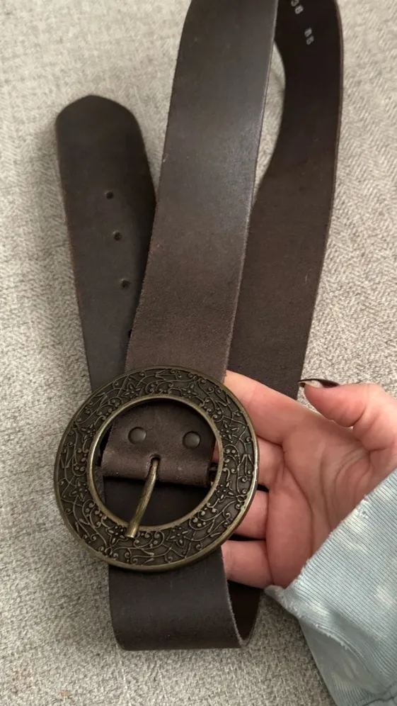 Great preowned vintage condition Size European 85 is 34” in US sizing Belt measures 37” from end t... Show more