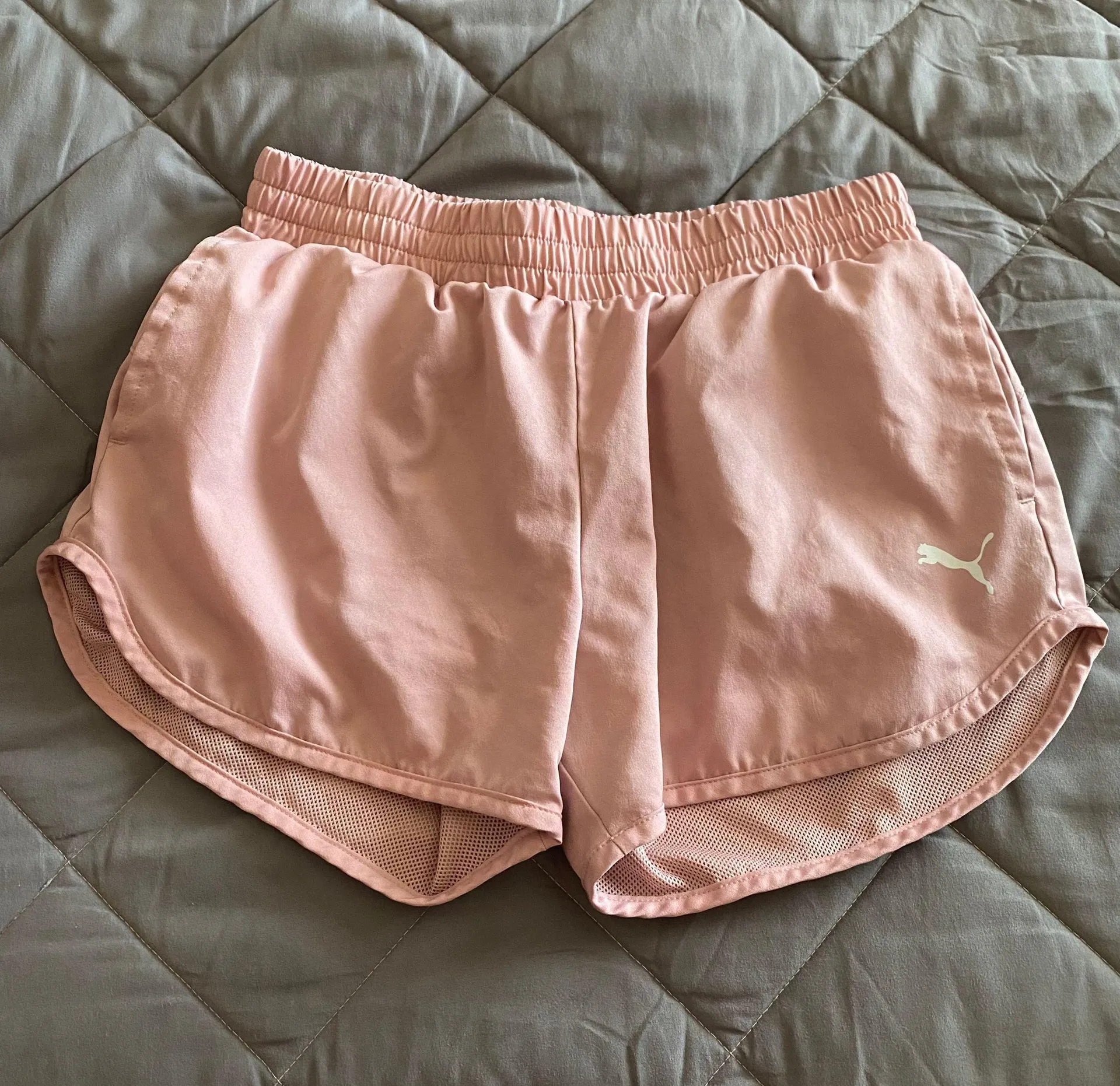 light pink Puma athletic shorts worn, but still in great condition, no flaws size medium- fits tru... Show more