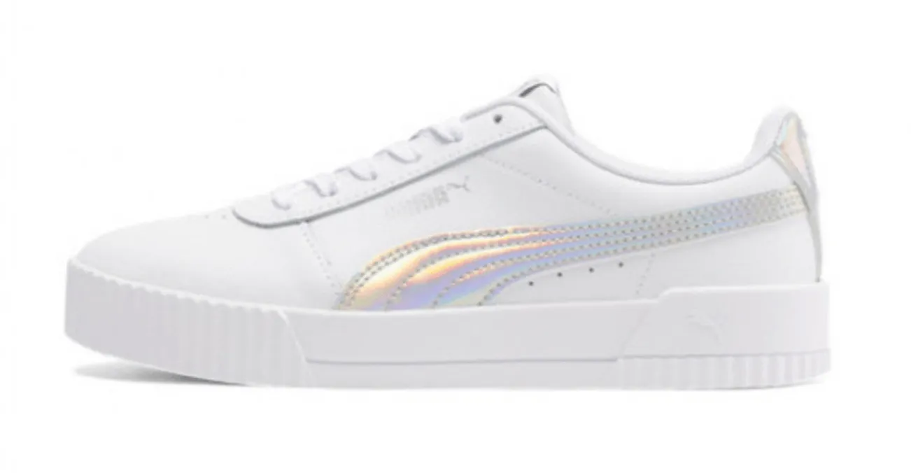 PUMA Carina white leather silver iridescent platform sneakers. EUC, low top, lace up, leather upper,... Show more