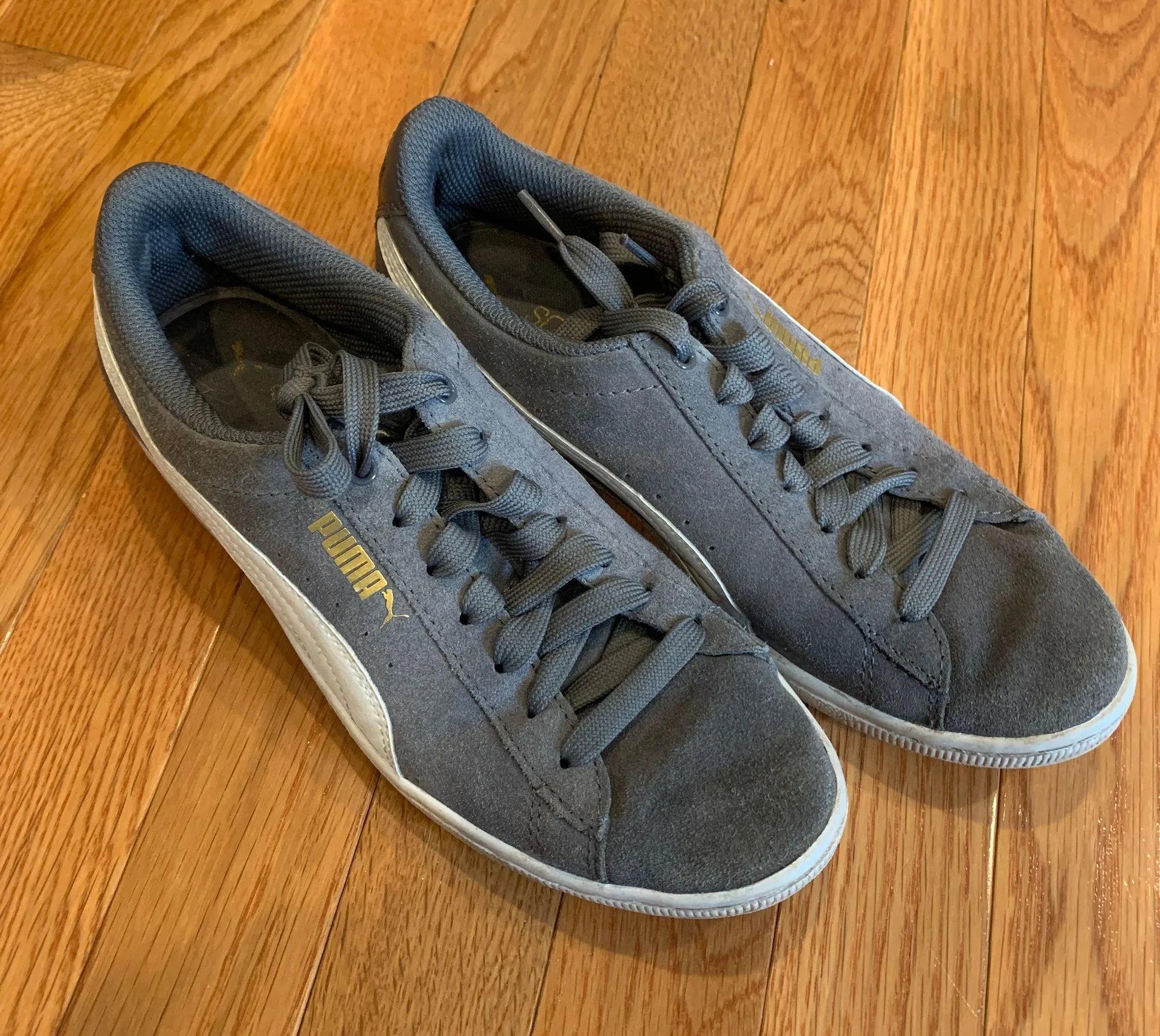 comfortable, low rise, casual puma sneakers. well loved, but in good condition.