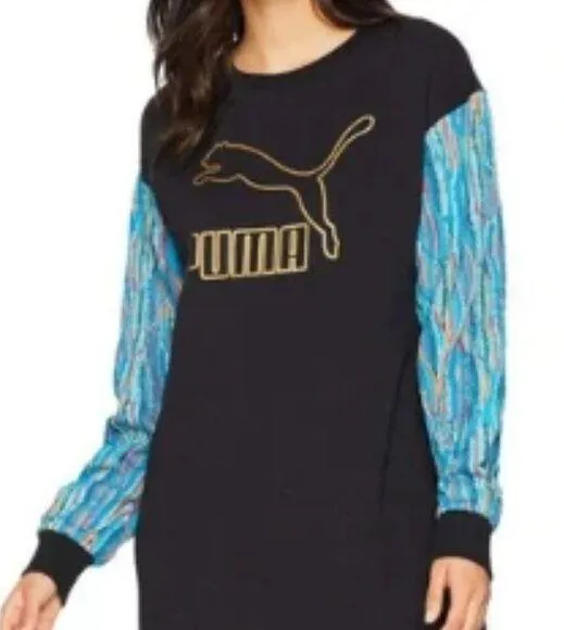 PUMA COOGI Sweatshirt Long Sleeve Shirt Black Dress Women's Size XS Multicolor Sleeves Sweatshirt... Show more