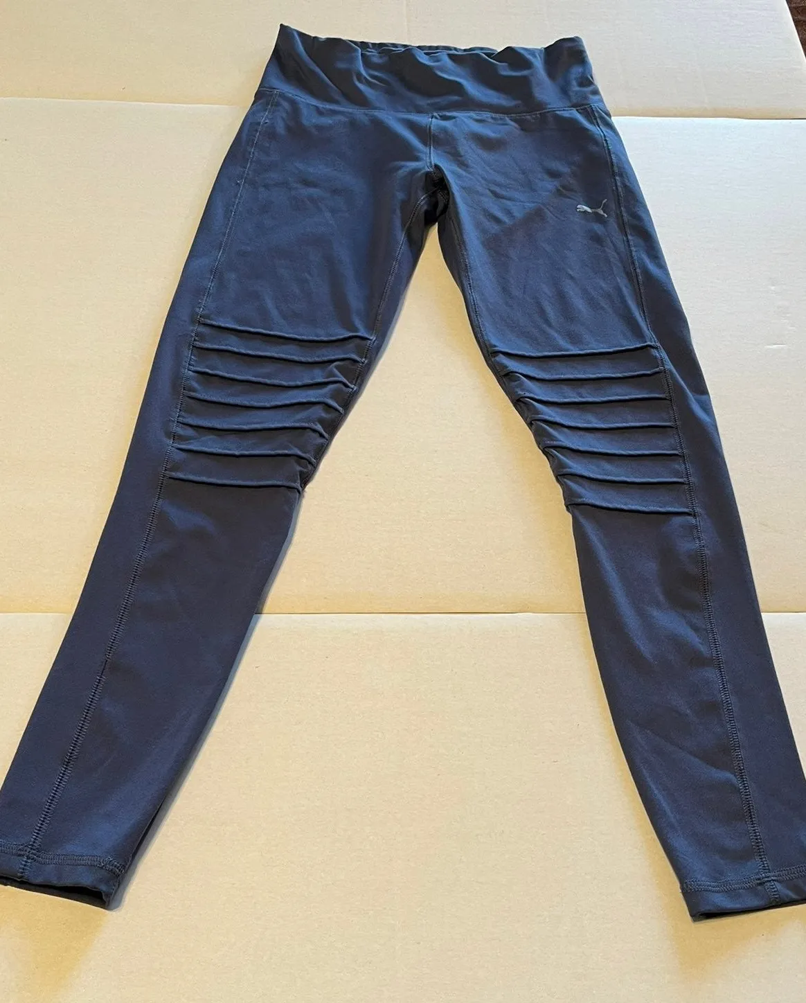 PUMA periwinkle (more of a purple/grey in color) moto style leggings with mesh cut-outs on the cal... Show more