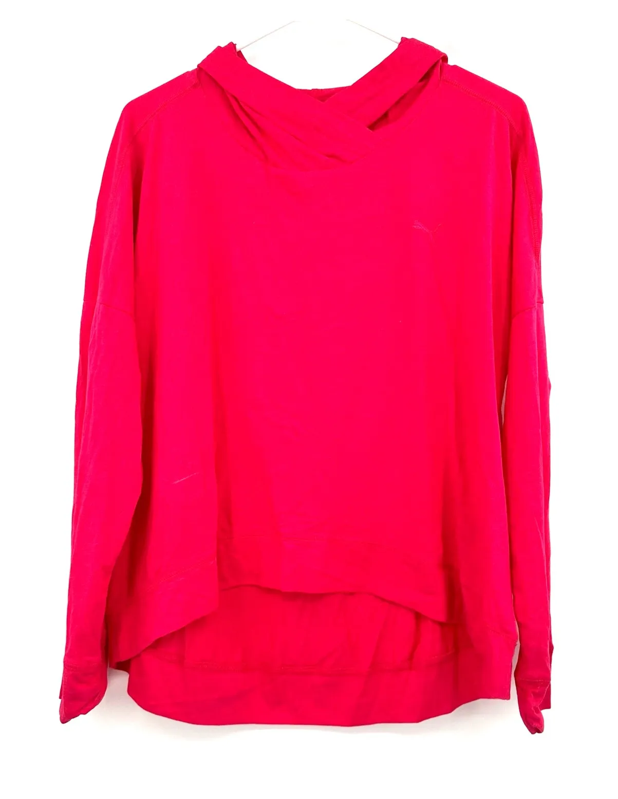 Puma Size XL Pink Jersey Knit Pullover Shirt Top Cowl Neck Hoodie Outerwear Light