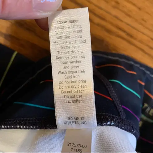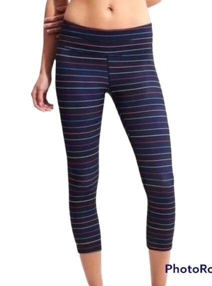 Athleta Multi-stripe Navy Rainbow Sonar Cropped Leggings Tights size Small. Back zip pocket, inner k... Show more