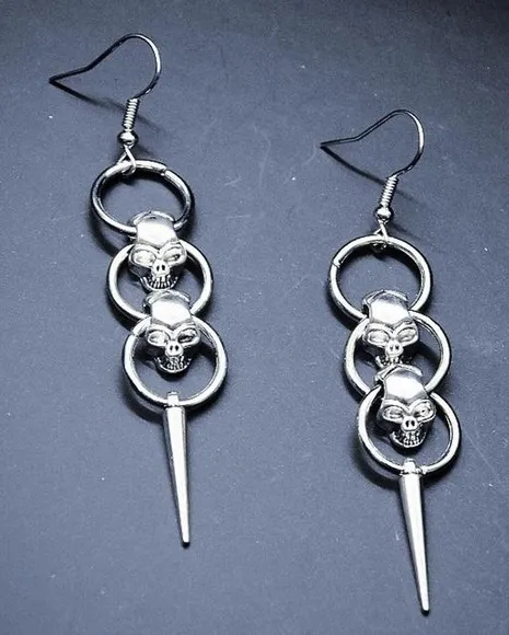 Punk Skull Spike Earrings Silver - $15 - From Brooklyns