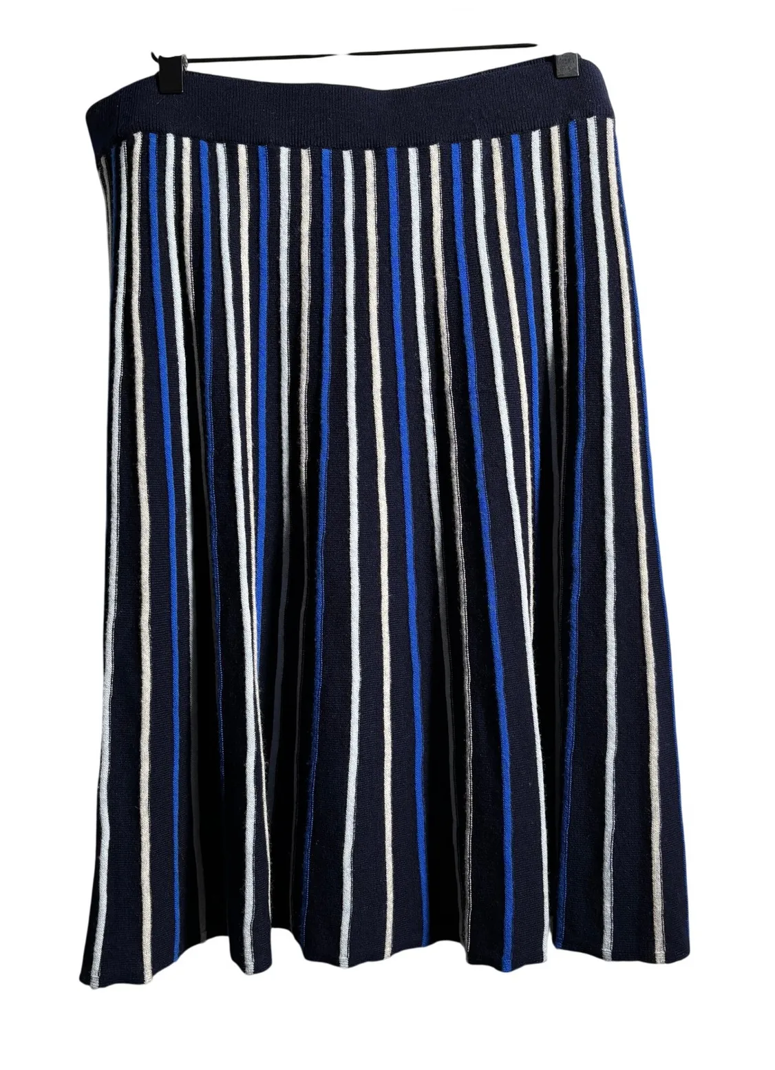 Pure Collection Blue White Striped Wool Cashmere A-Line Skirt XL Pleated Soft Luxury Prep Measureme... Show more