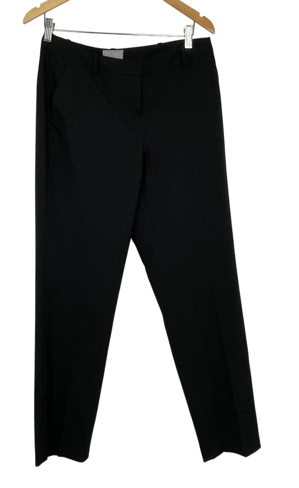 Elevate your work wardrobe with these sophisticated and timeless dress pants. A modern silhouette defines these trousers, offering a sleek and flattering fit for any professional setting. These feature a comfortable mid-rise, classic black color, and a versatile straight leg that pairs effortlessly with blouses, blazers, and sweaters. These pants are perfect for office meetings, conferences, or any day you want to exude confidence and style. Style: Dress Pants Department: Women Material: Wool, Polyester, Elastane Leg Style: Straight Features: Pockets, Lined, Stretch Type: Pants Fabric Type: Twill Closure: Button, Zip, Hook & Eye Pattern: Solid Accents: Button, Pleated Theme: Preppy, School Occasion: Workwear, Business Measurements below: Waist 16" Rise 12" Inseam 30" Keywords: dress pants, career pants, work pants, black pants, straight leg pants, wool pants, business casual, office attire, professional wear, women's pants, PURE Collection, size 6R, classic pants, formal pants