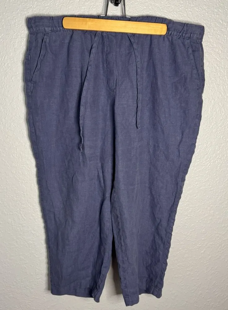 Pure J Jill Linen Cropped Pant Elastic Waist Size XL Petite Pockets Blue Relaxed - $27 - From Cassandra