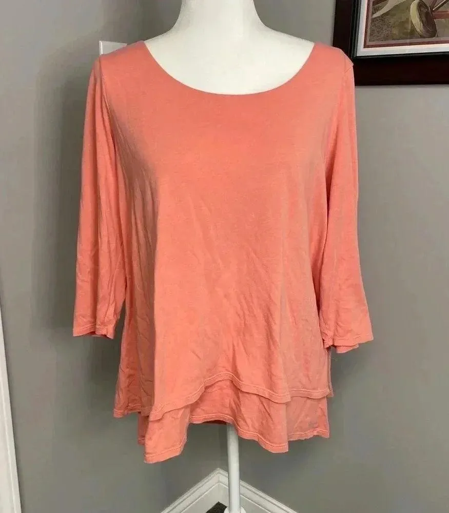 * 60% Cotton/ 40% Modal * Extremely Soft * Elliptical Hem Line * Split Back * 3/4 Sleeves Excellent preowned condition Armpit to Armpit: 23” Length: 1st: 23.5” 2nd: 26 Back : 28” Sleeve: 18.5” Tags: Boho, Festival, Contemporary, Cottagecore, Beach, Coastal, Seashore, Prairie, Boho chic, Coastal Grandma, Minimalist, Lagenlook, Loungewear