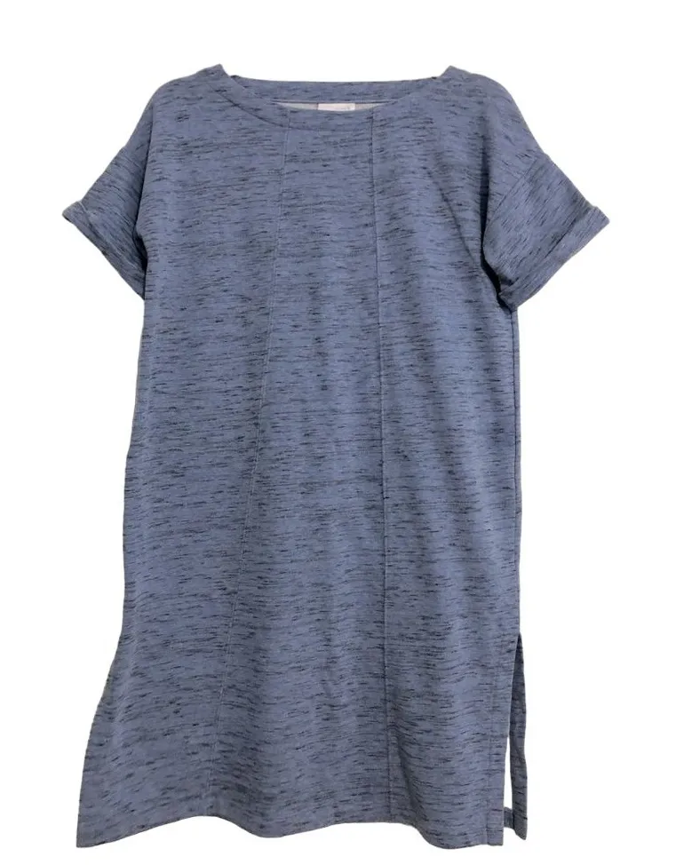 Pure Jill J.Jill short sleeve tunic dress side slits women's size XS blue tones. Preowned in good condition Perfect dress to throw on with tights and boots for fall and winter. Very soft Pit to pit 20" across Length 36" Side slit on each side 9" Waist area 19" across Has nice long seam details Cozy. Business casual date night cottagecore