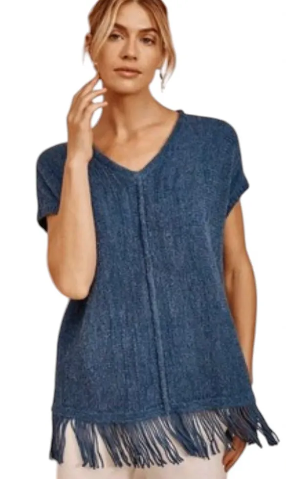 Pure Jill Women's Fringed-Hem V-Neck Indigo Blue Fit Sweater Boho blanket like fabric . Cozy blue t... Show more