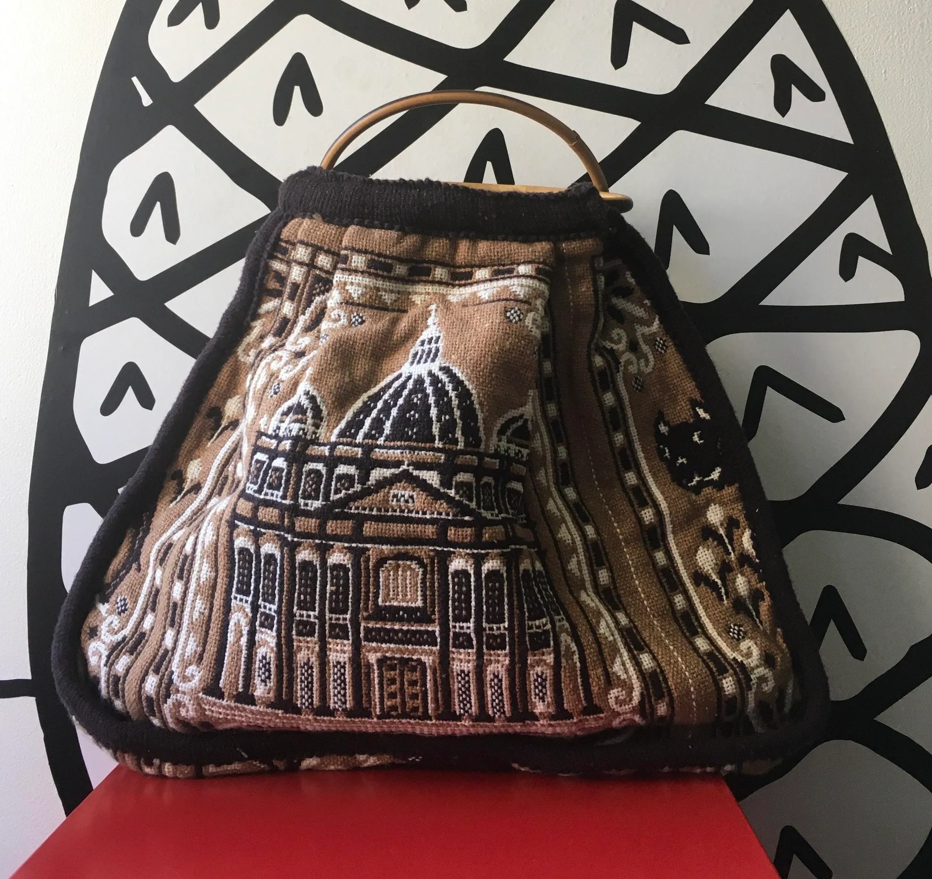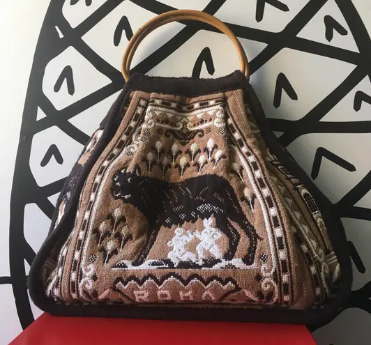 Vintage crochet knot hobo style purse. I found this unique piece while vintage shopping in NC. There are some signs of wear one of the wooden handles is loose in the inside but you can still use both handles as normal to carry. There some chipping along the exterior of the handles. Please review pics before placing your bid. Measurements: 17 in width 20 1/2 in height