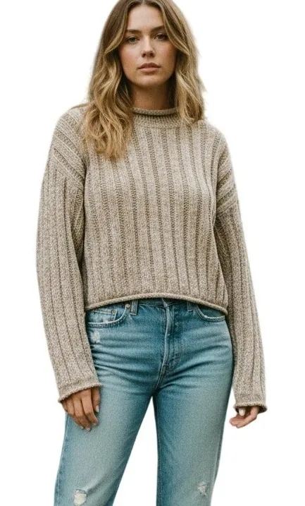 Cozy up in this Q&A knit sweater, a perfect blend of comfort and chic style. The mock neckline offers a touch of sophistication, while the ribbed texture adds visual interest and a flattering fit. Its cropped silhouette makes it ideal for pairing with high-waisted bottoms, creating a modern and elongated look. Imagine the soft feel against your skin as you transition from a casual brunch with friends to a relaxed evening out. This versatile piece is perfect for layering on crisp autumn days or as a standalone statement for a stylish weekend ensemble. Measurements: • Chest (pit to pit): 23 in • Length (shoulder to hem): 19 in • Sleeve length (shoulder to cuff): 23 in Keywords: Q&A Sweater, Knitwear, Mock Neck, Ribbed Knit, Cropped Sweater, Long Sleeve, Beige Sweater, Casual Style, Fall Fashion, Winter Wardrobe, Layering Piece, Comfortable, Stylish Thanks for looking!!