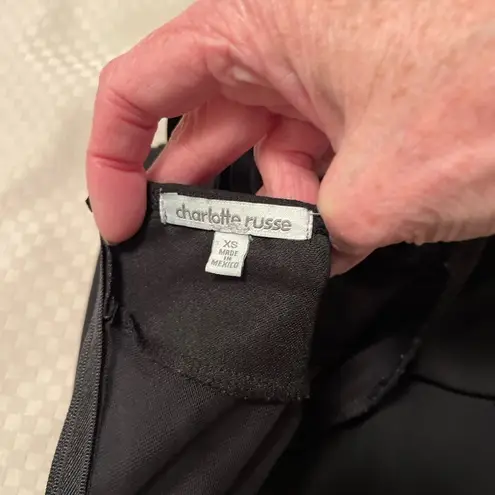 Charlotte Russe vintage Y2K strappy little black dress with mesh inset & front slit. XS. This bodyco... Show more