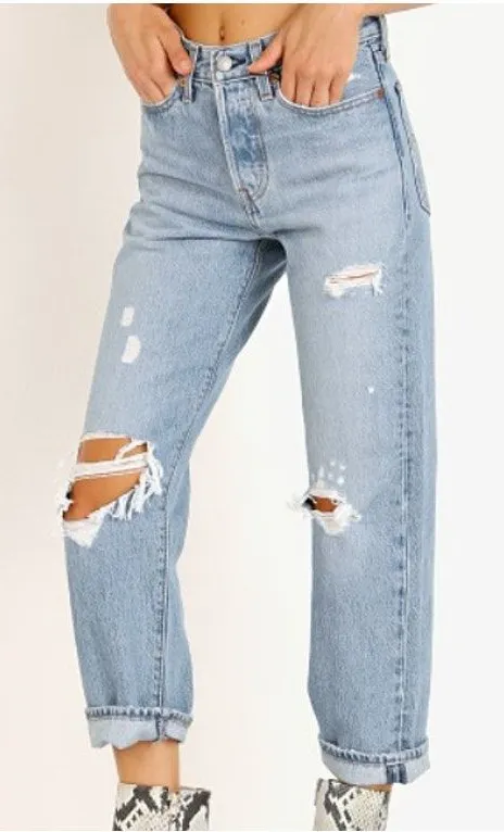 Levi's Premium Women's size 28 Wedgie Straight Light Wash Distressed Button Fly Jeans. Levi's Premiu... Show more