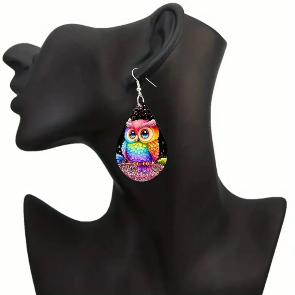 Lovely Owl Design Waterdrop Colorful Wooden Drop Ear Dangle‎ Jewelry - $13 New With Tags - From Mon