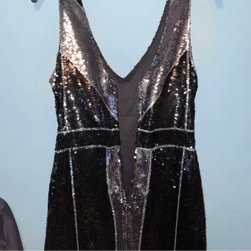 B Darlin All Over Sequin Sheath Dress Black Silver and Chrome Sequins V-Neck Sleeveless Above the K... Show more