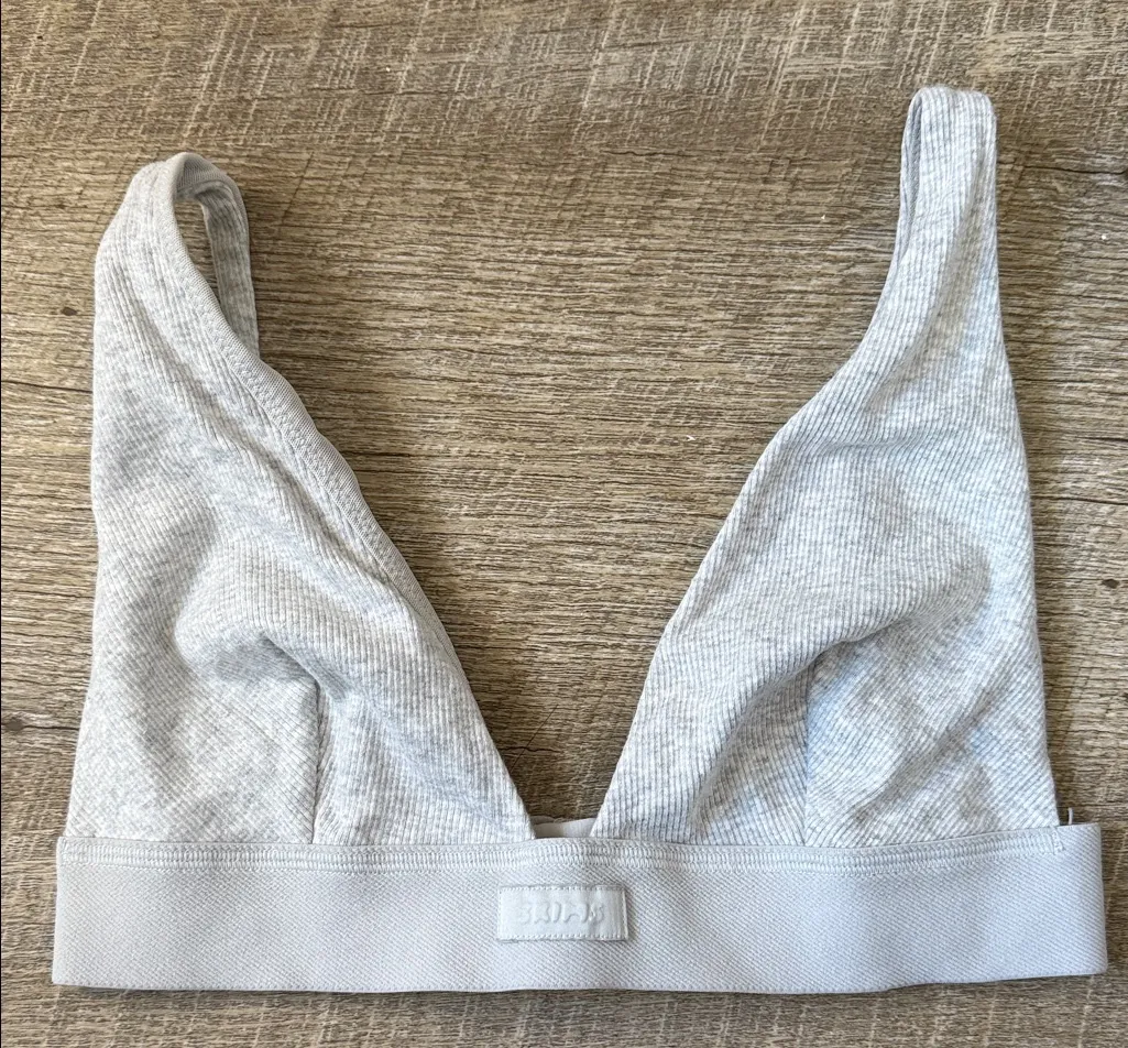 SKIMS Stretch Cotton Rib Plunge Bralette In Light Heather Grey Size Medium Gray - $20 - From Amanda