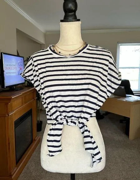 ZARA Black And White Striped Tie Front Crop Shirt Size Large Sleeveless Light weight Lounge wear Ca... Show more